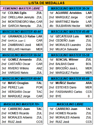 Los medallistas en cada modalidad fueron los siguientes atletas: